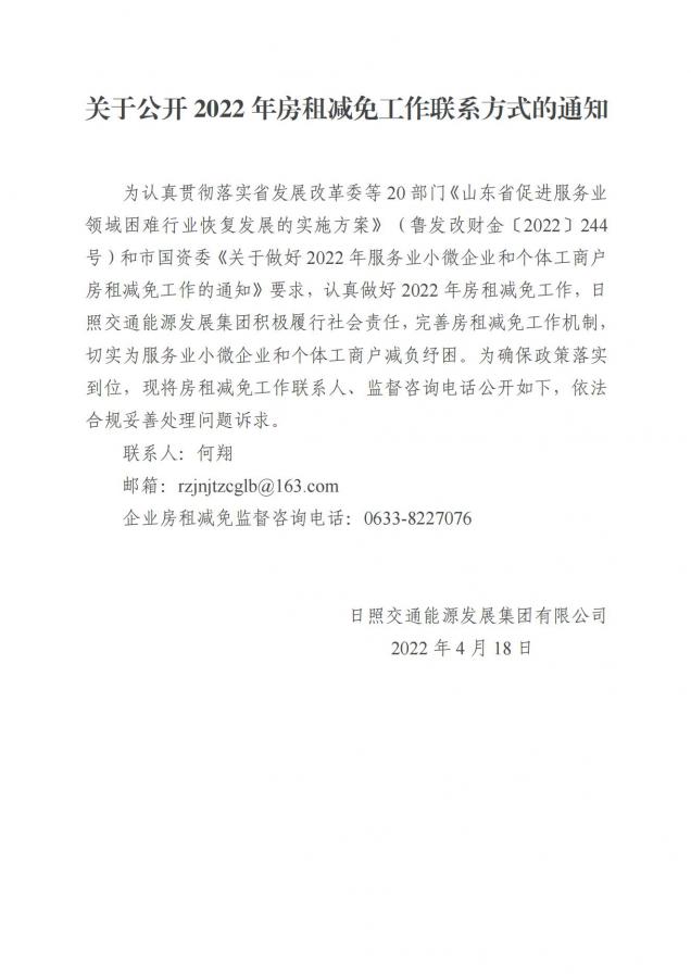 重大事項——關(guān)于公開 2022 年房租減免工作聯(lián)系方式的通知