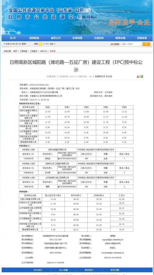 日照高新區(qū)城陽(yáng)路(濰坊路—五征廠房)建設(shè)工程(EPC)項(xiàng)目:為城市支路,是新建道路,工程內(nèi)容包括道路、排水、交通、照明、擋土墻等。