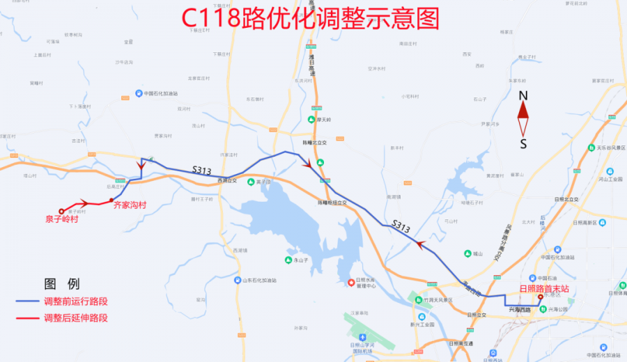 1.由日照路首末站-齊家溝,調(diào)整為日照路首末站(不變)-泉子嶺村。