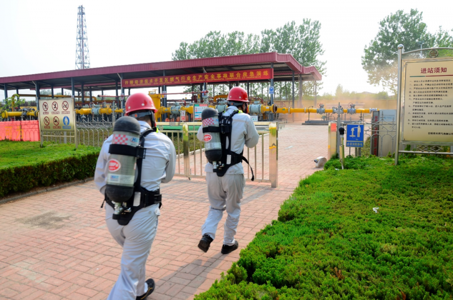 ▲穿戴自給式空氣呼吸器進(jìn)入工藝區(qū)搶修