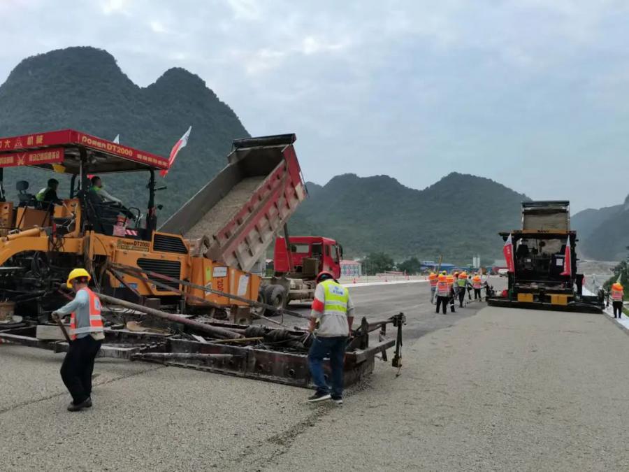 為給廣西最長雙向6車道天巴高速勤蘭隧道貫通提供條件,集團建設(shè)公司天巴項目部加班加點、高溫作戰(zhàn),4天內(nèi)完成連接線匝道段、隧道進口主線段基層2.3萬噸攤鋪任務(wù)。