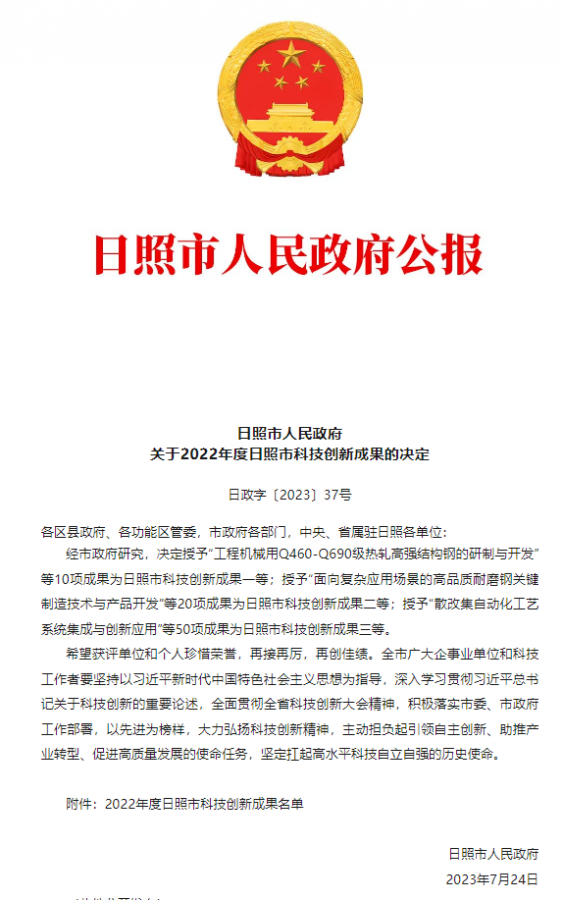 近日,日照市政府正式公布“2022年度日照市科技創(chuàng)新成果名單”。其中建設公司的“基于基層韌性提升的新一代長壽命瀝青路面施工技術(shù)”獲得科技創(chuàng)新成果二等,養(yǎng)護公司“城市高效智能洗掃車”獲得科技創(chuàng)新成果三等。