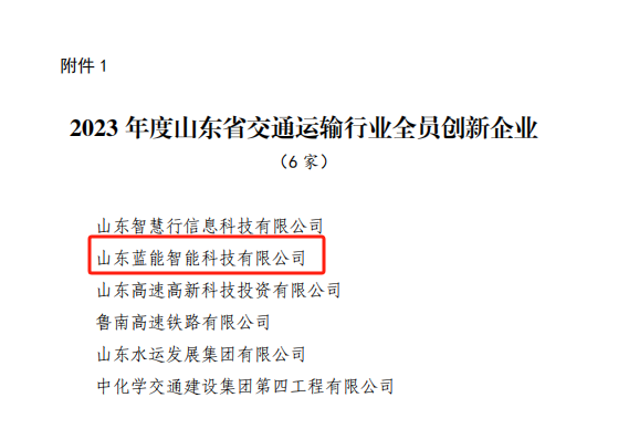 近日,山東省交通工會(huì)委員會(huì)公布了2023年度山東省交通運(yùn)輸行業(yè)全員創(chuàng)新企業(yè)、勞模工匠創(chuàng)新工作室和職工優(yōu)秀技術(shù)創(chuàng)新成果,集團(tuán)藍(lán)能科技公司獲評(píng)“山東省交通運(yùn)輸行業(yè)全員創(chuàng)新企業(yè)”榮譽(yù)稱(chēng)號(hào)。