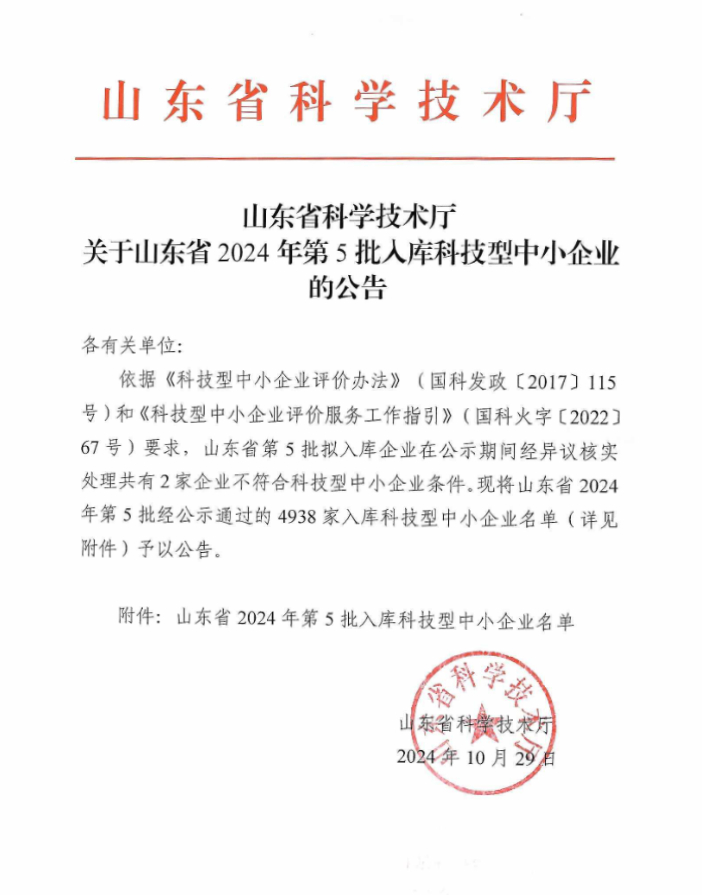 近日,山東省科學技術廳公布了山東省2024年度第五批科技型中小企業(yè)名單,日照綠茶集團成功入選為山東省2024年度第五批科技型中小企業(yè)。