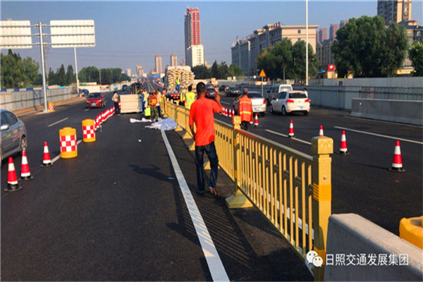經(jīng)過21個(gè)小時(shí)的連續(xù)奮戰(zhàn),7月15日凌晨3:00,迎賓路快捷路改造三期工程主線2400米護(hù)欄全部保質(zhì)保量的安裝完成。