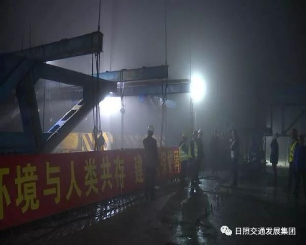 12月2日晚,濃霧厚重的夜色里燈光閃爍,204國道繞城改建工程上跨日蘭高速分離立交橋工地上機(jī)械轟鳴,工作人員在自己的崗位上緊張而有序的工作著。晚上七時(shí)許,隨著最后一塊箱梁澆筑完畢,204國道繞城改建工程上跨日蘭高速分離立交橋正式合龍,為204國道繞城改建工程按期順利通車奠定了堅(jiān)實(shí)基礎(chǔ)。