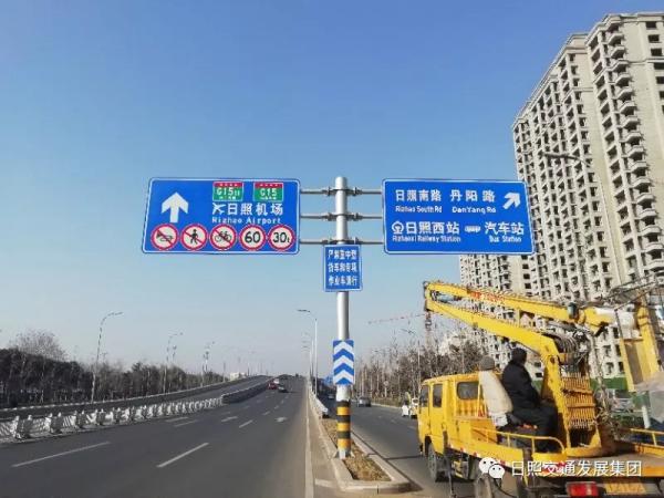 通過在部分路段,設(shè)置禁行重、中型載貨汽車及其掛車和專項(xiàng)作業(yè)車提示標(biāo)牌,在部分路段增加日照西綜合客運(yùn)站指引內(nèi)容,為市民提供清晰干凈、明亮整潔的道路指示效果。