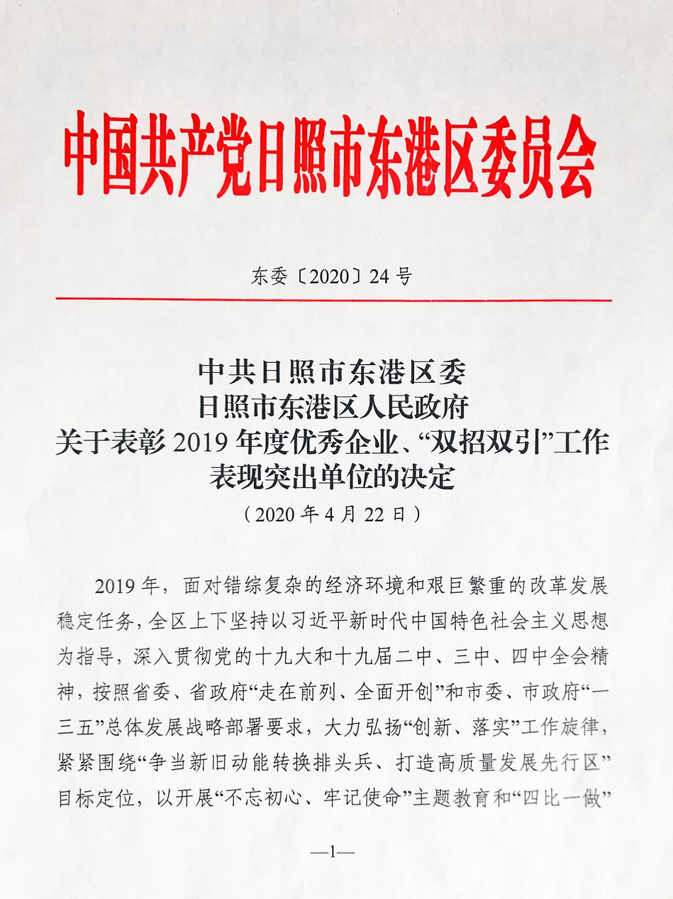 4月22日,東港區(qū)召開區(qū)委經(jīng)濟工作暨重點工作攻堅動員會議。會上對2019年度優(yōu)秀企業(yè)、“雙招雙引”工作表現(xiàn)突出單位進(jìn)行表彰,建設(shè)公司榮獲經(jīng)濟發(fā)展貢獻(xiàn)獎。