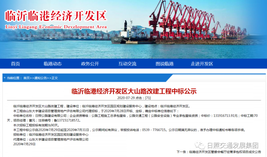 7月29日,再傳捷報(bào),建設(shè)公司中標(biāo)臨沂臨港經(jīng)濟(jì)開發(fā)區(qū)大山路改建工程,中標(biāo)金額13191.67萬元。7月份,建設(shè)公司深耕“走出去”市場攻堅(jiān)行動(dòng),在臨港區(qū)頻頻發(fā)力,連續(xù)中標(biāo)黃海四路、蘆山路、大山路道路改建工程,中標(biāo)金額3.54億元。