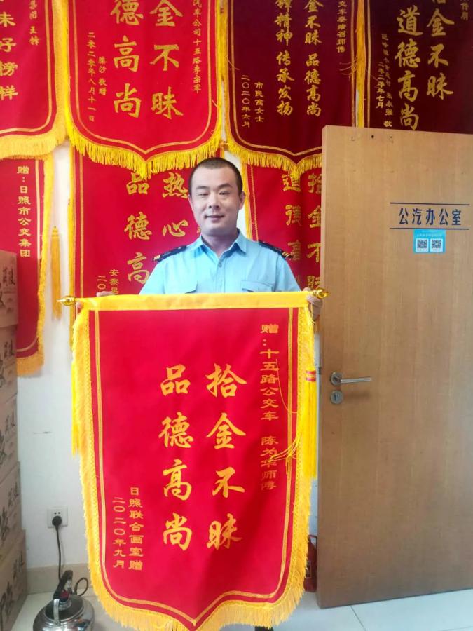 當天,失主張先生趕至工作組,親手領(lǐng)回了自己丟失的手提包,并對拾金不昧的駕駛員陳師傅再三表示感謝,還送上了特地制作的一面印有“拾金不昧 品德高尚”的錦旗聊表謝意。