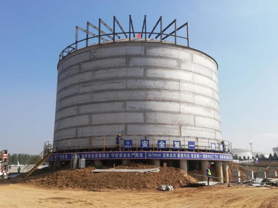 10月8日,在日照LNG調(diào)峰儲(chǔ)氣設(shè)施項(xiàng)目施工現(xiàn)場,正在進(jìn)行全容罐主體壁板安裝工作,工作人員搶抓工期,放假不放松,“雙節(jié)”期間保障施工進(jìn)度。