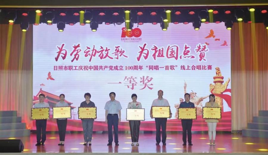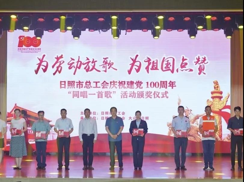 6月18日上午,全市職工“學(xué)黨史 感黨恩 頌黨情 ”主題閱讀分享會(huì)暨慶祝建黨100周年“同唱一首歌”活動(dòng)頒獎(jiǎng)儀式成功舉行,集團(tuán)榮獲日照市職工慶祝中國(guó)共產(chǎn)黨成立100周年“同唱一首歌”線(xiàn)上合唱比賽一等獎(jiǎng),并作為全國(guó)職工書(shū)屋示范點(diǎn)代表單位上臺(tái)領(lǐng)取“同唱一首歌”優(yōu)秀作品合集。