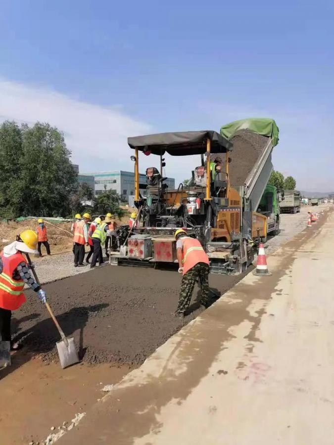 這是聊城路(昭陽(yáng)路—G204)道路建設(shè)工程項(xiàng)目瀝青路面攤鋪現(xiàn)場(chǎng)
