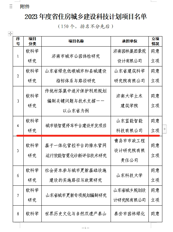 山東藍能智能科技有限公司的《城市級智慧停車平臺建設(shè)開發(fā)項目》成功入選“2023年度省住房城鄉(xiāng)建設(shè)科技計劃項目”名單。