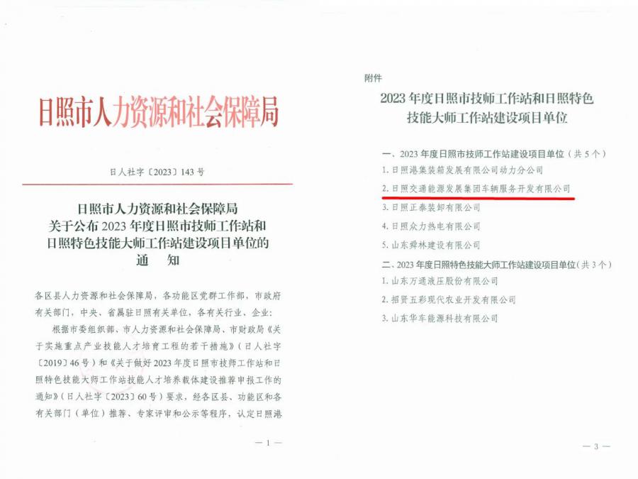 近日,經(jīng)市人力資源和社會保障局組織專家評定,集團(tuán)車輛服務(wù)公司入選2023年度日照市技師工作站建設(shè)項目單位。
