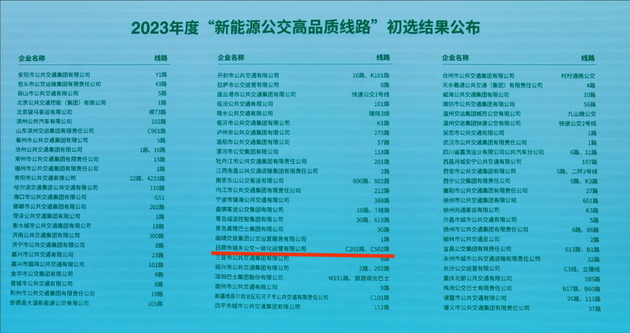 近日,由交通運輸部主辦、中國交通報社承辦的“我的公交我的城”重大主題宣傳活動在濱州市舉行。活動同期發(fā)布了2023年度“新能源公交高品質(zhì)線路”初選結(jié)果,集團(tuán)城鄉(xiāng)公交C202路、C502路成功入選。