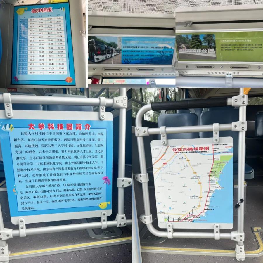 車輛煥新,線路全部啟用一級踏步海格新能源純電動公交車,整車流線造型、車身塑以白藍相間海洋文化噴涂,以過人的“顏值”和更智能、更安全的服務,助力日照和青島的公共交通聯(lián)袂出圈。站點煥新,調整35路王家灘方向終點站,由原來的“王家灘”站調整到“日照青島公交換乘”站,方便902路乘客下車即可換乘35路。儀容煥新,按照公交駕駛員服務規(guī)范,要求線路所有駕駛員規(guī)范著裝,規(guī)范服務禮節(jié),溫馨呵護乘客出行全程。車內煥新,利用車內廣告、語音報站、車載視頻、扶手廣告,制作日照大學科技園駐地校園風采,校園公交出行指南,站點換乘提示等便民服務的內容;制作35路沿途旅游景點以及日照沿海潮汐時間表等旅游貼士推薦;共享青島景區(qū)旅游便民信息。