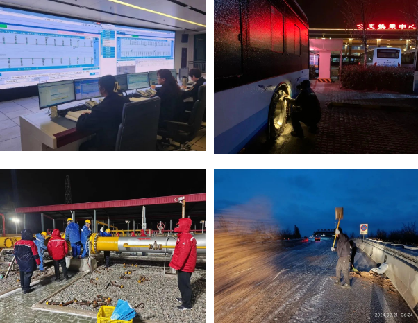 分析研判極端天氣對(duì)客運(yùn)安全影響,根據(jù)客運(yùn)流量動(dòng)態(tài)優(yōu)化公交運(yùn)力,充分利用媒體、公眾號(hào)、抖音等媒介,及時(shí)發(fā)布長(zhǎng)途客運(yùn)、公交運(yùn)行信息,引導(dǎo)公眾合理選擇出行方式。城鄉(xiāng)公交調(diào)整運(yùn)行時(shí)間,保障群眾出行安全;城市公交提前加裝防滑鏈,秉承“夜間高鐵不到站,末班公交不發(fā)車”的服務(wù)宗旨,確保無(wú)乘客滯留現(xiàn)象發(fā)生;日照汽車站對(duì)西客站高架和山海路包暢路段進(jìn)行撒布融雪劑和防滑沙作業(yè);天然氣公司夜間為輸氣管道進(jìn)行防雪防凍現(xiàn)場(chǎng)檢查,對(duì)場(chǎng)站工藝區(qū)、重點(diǎn)操作部位及重要設(shè)備進(jìn)行除冰,確保平穩(wěn)供氣;日照西加氣站出動(dòng)值班人員在進(jìn)出站口布撒防滑沙,確保加氣車輛進(jìn)站順暢、出站平安。