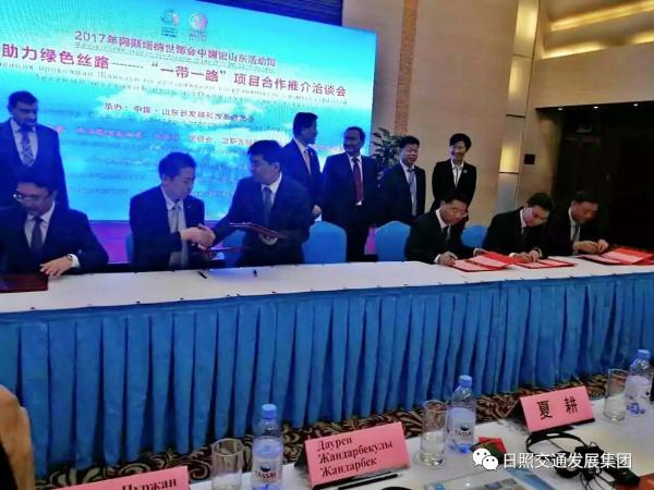 9月6日,以“絲路筑夢(mèng) 綠色山東”為主題的阿斯塔納世博會(huì)山東活動(dòng)周拉開(kāi)帷幕,并舉辦了山東助力綠色絲路——“一帶一路”項(xiàng)目合作推介洽談會(huì)。山東省政府組團(tuán)參加洽談會(huì),省人大常委會(huì)副主任夏耕出席儀式并致辭,金立柱董事長(zhǎng)隨團(tuán)參加會(huì)議,并與哈薩克斯坦方面就交通基礎(chǔ)設(shè)施建設(shè)簽署框架性協(xié)議,積極推動(dòng)集團(tuán)同“一帶一路”沿線國(guó)家在基礎(chǔ)設(shè)施建設(shè)、先進(jìn)制造業(yè)等多領(lǐng)域的全面合作。金立柱董事長(zhǎng)在接受山東廣播電視臺(tái)記者采訪時(shí)表示,哈薩克斯坦與山東省及日照市在經(jīng)濟(jì)上有很強(qiáng)的互補(bǔ)性,發(fā)展前景廣闊,日照交通發(fā)展集團(tuán)將充分發(fā)揮自身在交通建設(shè)、道路材料、筑路設(shè)備等方面優(yōu)勢(shì),積極與哈薩克斯坦在交通基礎(chǔ)設(shè)施建設(shè)、先進(jìn)制造業(yè)等方面尋求合作。將大力實(shí)施“走出去”發(fā)展戰(zhàn)略,充分發(fā)揚(yáng)“開(kāi)拓進(jìn)取、開(kāi)放包容、互學(xué)互鑒、互利共贏”的古絲路精神,積極參與“一帶一路”建設(shè),加強(qiáng)與“一帶一路”沿線國(guó)家的合作,努力在服務(wù)大局、服務(wù)發(fā)展中展現(xiàn)企業(yè)擔(dān)當(dāng)。