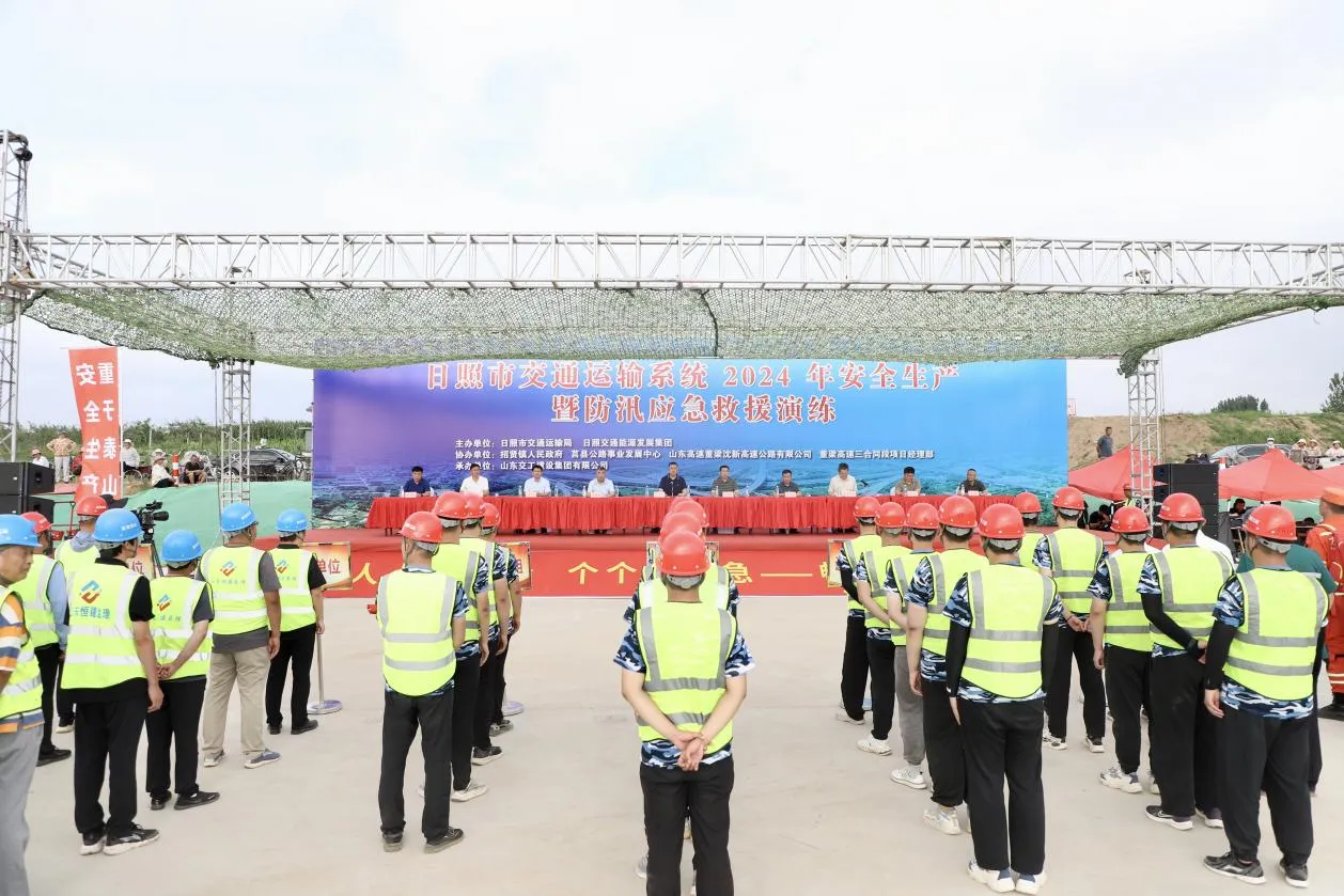 為落實(shí)落細(xì)安全生產(chǎn)治本攻堅(jiān)三年行動(dòng),檢驗(yàn)全市交通運(yùn)輸安全生產(chǎn)及防汛防臺(tái)風(fēng)應(yīng)急能力建設(shè)成果,進(jìn)一步提高突發(fā)災(zāi)害天氣引發(fā)各類險(xiǎn)情時(shí)的應(yīng)急響應(yīng)能力和應(yīng)急處置實(shí)戰(zhàn)化水平,6月19日,市交通運(yùn)輸局、日照交通能源發(fā)展集團(tuán)在董梁高速沈海高速至新泰段工程三合同段項(xiàng)目聯(lián)合舉行日照市交通運(yùn)輸系統(tǒng)2024年安全生產(chǎn)暨防汛應(yīng)急救援演練。