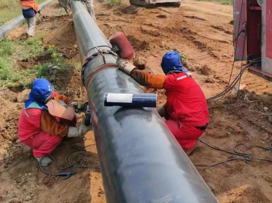 施工人員克服連續(xù)降雨、高溫炎熱等不利天氣影響,搶工期、趕進(jìn)度,緊盯時(shí)間節(jié)點(diǎn),科學(xué)組織施工,全力以赴保障項(xiàng)目順利推進(jìn)。截至目前,已完成管道焊接預(yù)制2700米,管溝回填1100米,繡針河定向鉆三級(jí)500擴(kuò)孔。