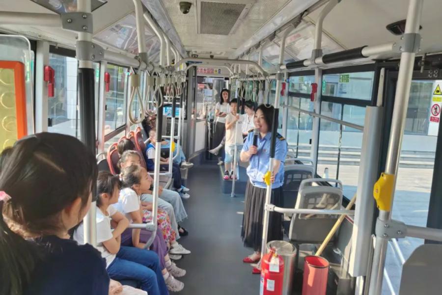 在“公交安全知識(shí)講堂”上,通過講解和親身示范,讓萌娃們了解如何正確上下車、如何正確使用車內(nèi)應(yīng)急設(shè)備、如何在緊急情況下進(jìn)行自我保護(hù)等安全乘車知識(shí)。特別是安排萌娃坐到駕駛室,親身體驗(yàn)駕駛環(huán)境,更直觀地感受候車、乘車時(shí)公交車盲區(qū),養(yǎng)成“不在車前跑、不在車后留、不在車邊玩、不在路邊耍”的良好習(xí)慣。
