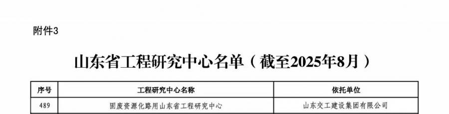 近日,省發(fā)改委發(fā)布《關(guān)于公布2025年新認定及全部山東省工程研究中心名單的通知》,山東交建集團與省交通科學(xué)研究院共建的“固廢資源化路用山東省工程研究中心”成功通過復(fù)審