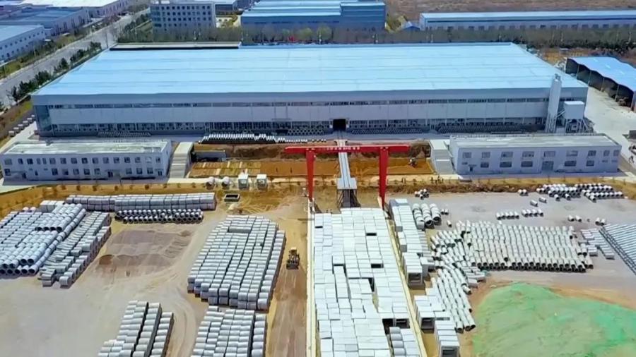 3月20日,在市北經(jīng)濟開發(fā)區(qū)山東晟華管業(yè)科技股份有限公司廠區(qū)內(nèi),目前全省范圍內(nèi)產(chǎn)出的最大口徑管涵——4米超大口徑頂管整裝待發(fā);車間內(nèi),芯模振動等多條混凝土管生產(chǎn)線,機器轟鳴,一根根管涵預(yù)制成型。